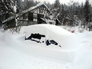 自動車は、このように、雪の山に埋もれます。